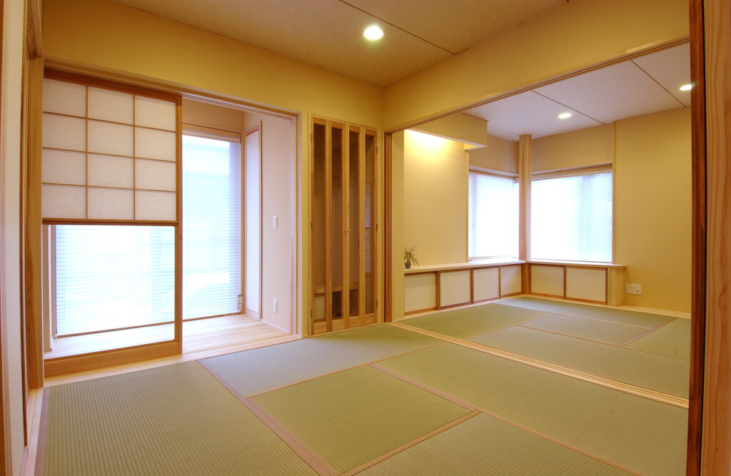 2間続きの畳の間はどちらも4.5帖ですが、地袋からつながる出窓を設けたこと、シンプルなデザインで仕上げたことで広々と感じます。