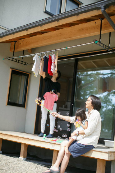 洗面脱衣室と連続したデッキ。 洗濯をしてそのまま干せるので、家事が一気にしやすくなりますね。
