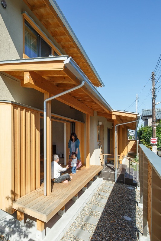 内と外、そしてふたつの家族をつなぐ濡れ縁。なごやかな笑い声が聞こえてくる。
