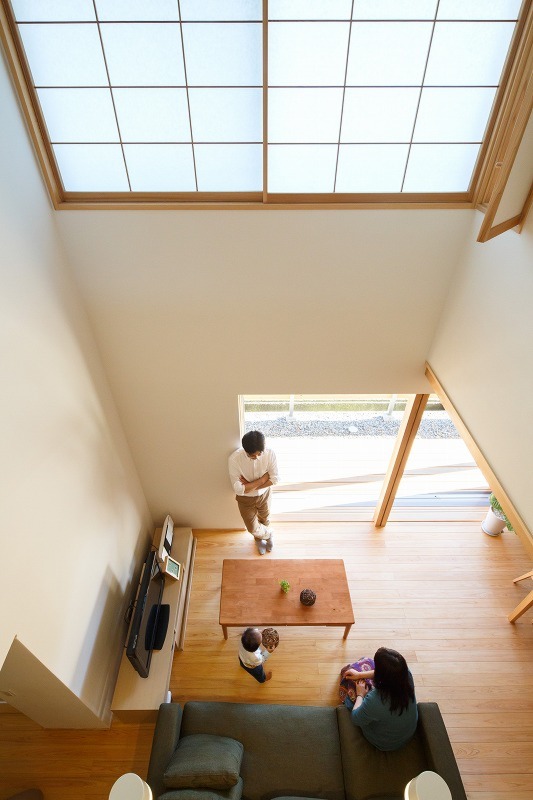 南向きの大きな窓からは心地よい風と自然の光が入り、家族の時間をやさしく包んでくれる。