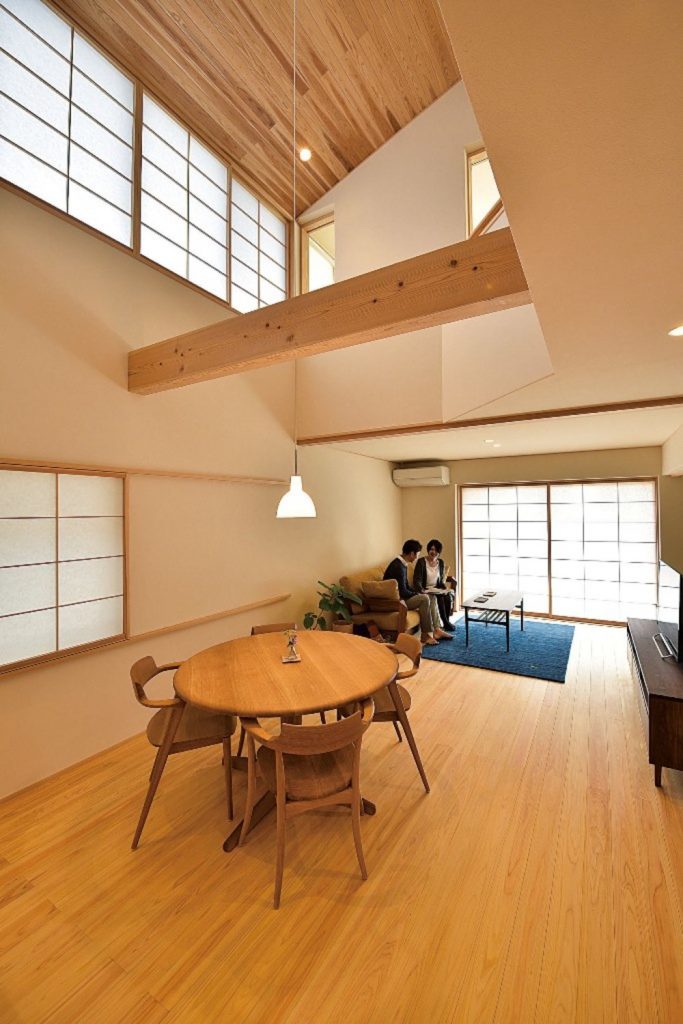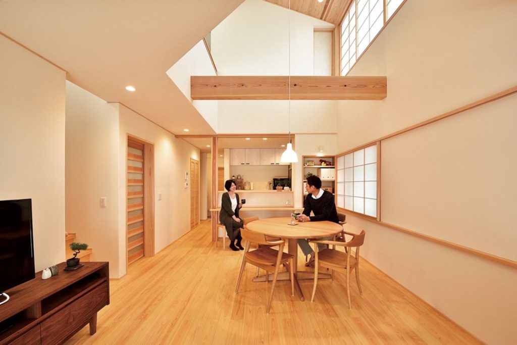 空間の余白が心地よいリビングダイニング。統一された障子が、どこか特別感のあるゆったりとした雰囲気を演出してくれます。