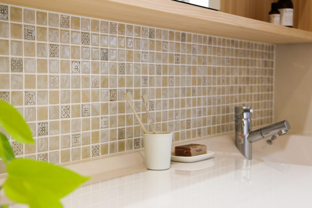 家づくりの中で見つけたお気に入りのタイルは、洗面を使うたびにときめきをくれる。
