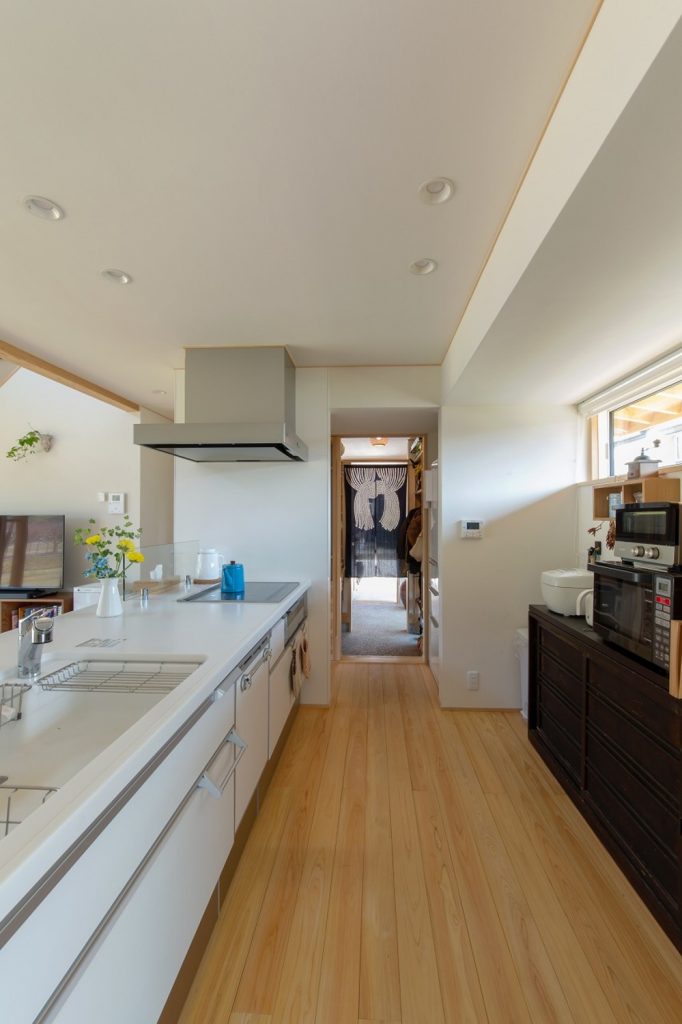 玄関からシューズクロークを通ってキッチンへ。荷物が多い日にも助かる暮らしやすい動線を確保しました。