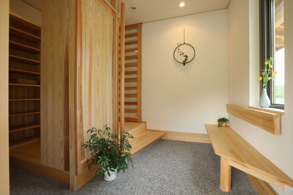 やさしく迎えてくれる木の家の玄関